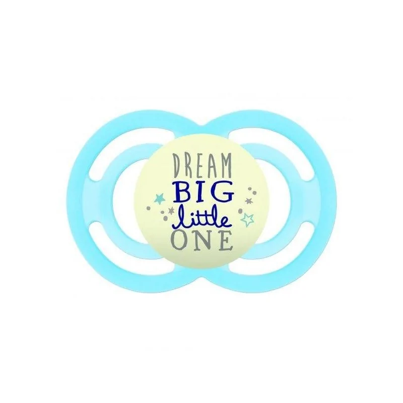 Ciuccio che si illumina al buio – facile da trovare grazie al bottone luminescente. Consente una chiusura più naturale della bocca. Ciuccio ortodontico progettato per ridurre il rischio di malocclusioni dentali.