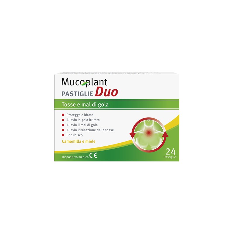 Durante la suzione gli estratti vegetali di Mucoplant PASTIGLIE Duo si sciolgono gradatamente posizionandosi come un film sulla mucosa di bocca e gola proteggendoli dall'irritazione.