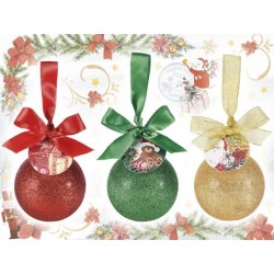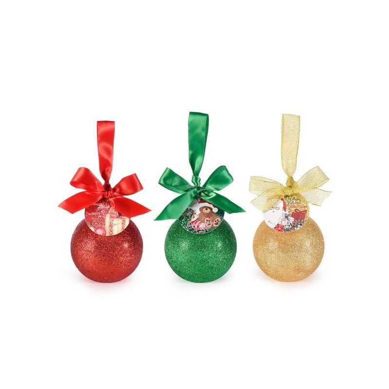 Confezione regalo a forma di pallina di natale glitterata contenente gel doccia profumato