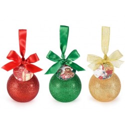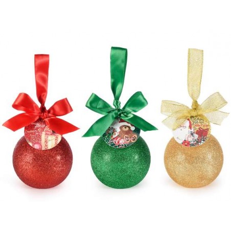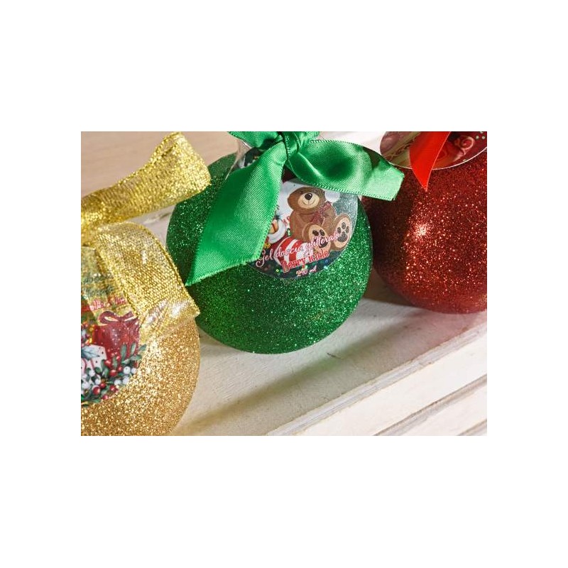 Pallina di Natale glitterata colore verde contenente bagnodoccia profumato bacche