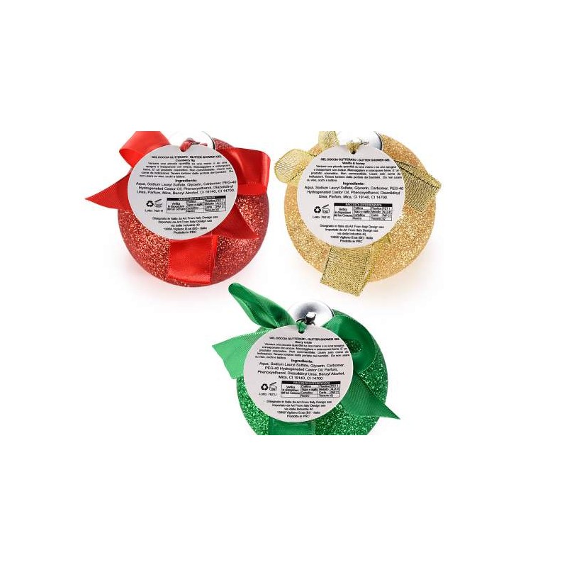Dettagli Pallina Natalizia Glitterata Verde Contenente Gel Doccia Profumato