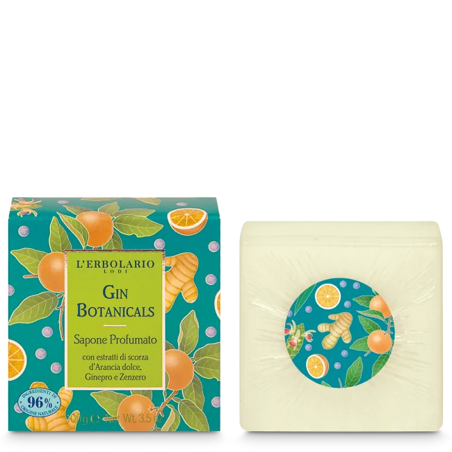 L'Erbolario Gin Botanicals Sapone Profumato è un detergente delicato con estratti di scorza d'Arancia dolce, Ginepro e Zenzero che lascia la pelle morbida e rinfrescata. Adatto a tutta la Famiglia.