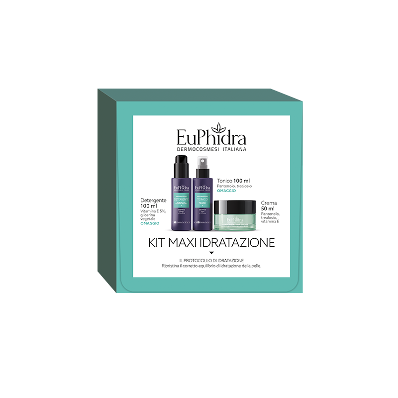 Euphidra Maxi Idratazione Kit è un protocollo che aiuta a ripristinare il corretto equilibrio di idratazione della pelle. Il kit starter è composto da: