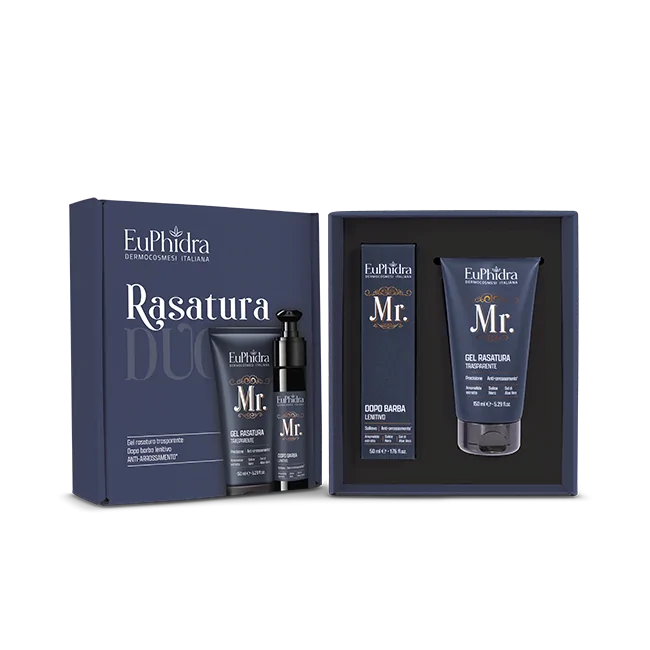 Euphidra Mr Duo Rasatura è un'idea regalo specifica per l'Uomo. Contiene due prodotti specifici per prendersi cura della barba con precisione e riducendo gli arrossamenti.