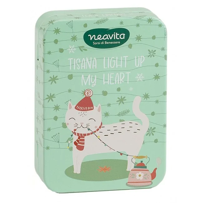 Neavita Scatola in Metallo Gatto Tea & Friends è un idea regalo originale contenente tisane e infusi biologici. Ottimo come piccola idea regalo per il Natale. Scatola colorata con scritta "Tisana Light up my Heart".