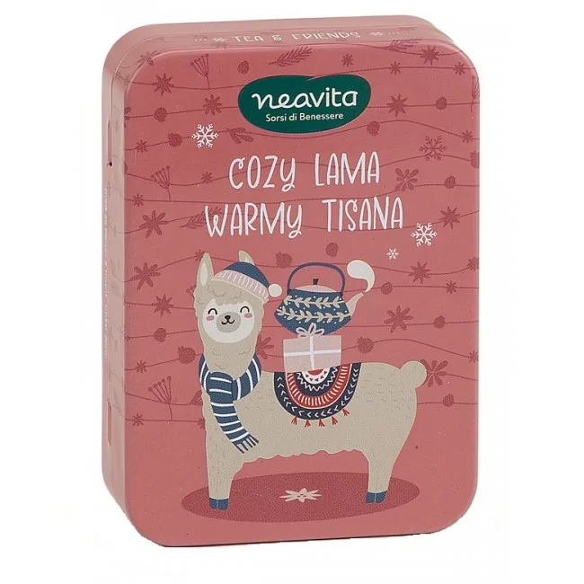 Neavita Scatola in Metallo Lama Tea & Friends è un idea regalo originale contenente tisane e infusi biologici. Ottimo come piccola idea regalo per il Natale. Scatola colorata con scritta "Cozy Lama Warmy Tisana".