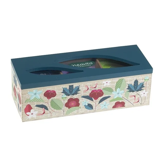 Neavita Tisane Collection Cofanetto in Legno Rettangolare Azzurro è un accessorio indispensabile per conservare le tue tisane e infusi in filtro preferiti. Ottimo come idea regalo per ogni occasione.