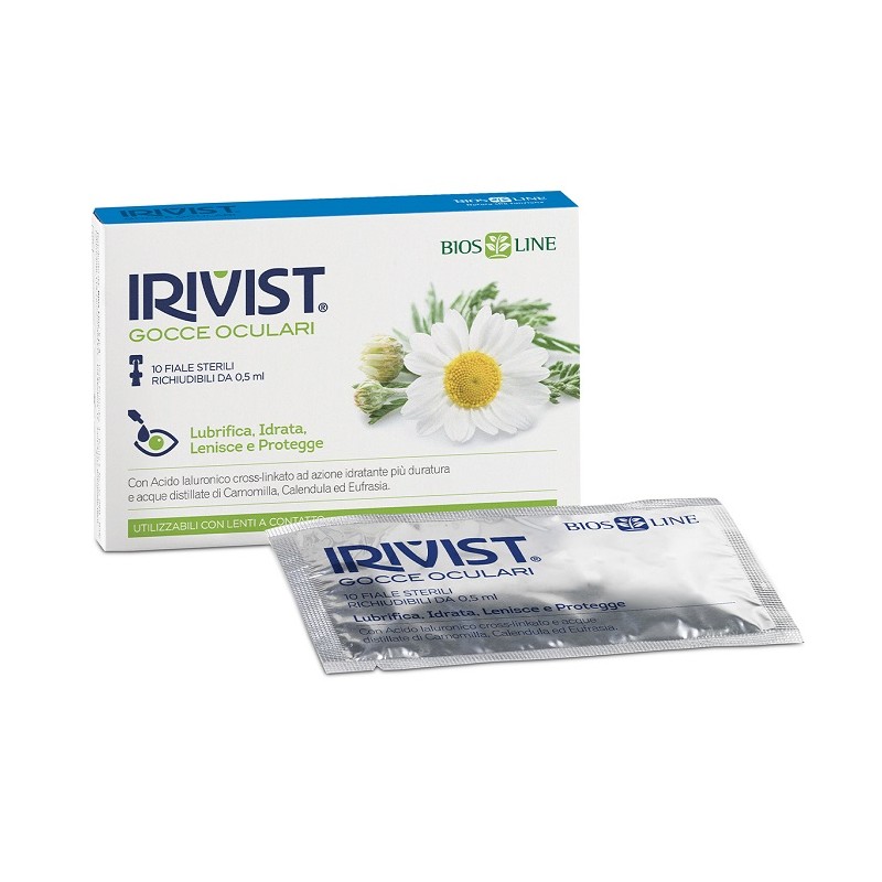 Irivist Gocce Oculari favorisce il ripristino delle naturali condizioni funzionali dell’occhio determinando un rapido e prolungato sollievo lubrificandolo e formando un film protettivo che contrasta l’azione dei fattori esterni quali smog, polvere, vento, ecc. Irivist Gocce Oculari previene e attenua i fastidi caratteristici della sindrome dell’occhio secco e le fastidiose sensazioni di prurito, bruciore e stanchezza che spesso si manifestano in caso di uso di lenti a contatto, lettura prolungata o attenzione alla guida.