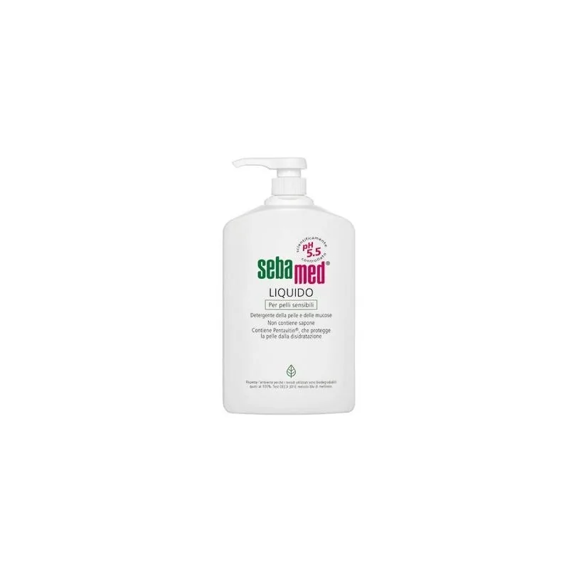 SebaMed Liquido con il lavaggio aiuta a risolvere i problemi della pelle. Non contiene sostanze alcaline, stabilizza l'acidità fisiologica della pelle e contribuisce al mantenimento del film idrolipidico dermoprotettivo. Pulisce accuratamente ed a fondo senza irritare anche le pelli che non sopportano il sapone. Nella toeletta quotidiana del neonato. anche in presenza di cute fortemente arrossata; dell'igiene intima femminile, durante e dopo la gravidanza. durante il periodo mestruale, nelle sudorazioni profuse. Non contiene sapone. pH 5.5. Contiene Pentavitin che protegge la pelle dalla disidratazione. Ecologico, perché i tensidi utilizzati sono biodegradabili quasi al 100%. Per pelli sensibili.Modalità d'utilizzo