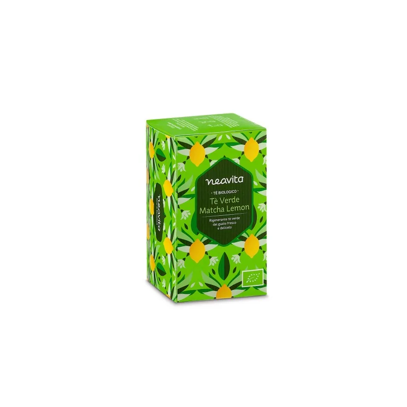 Neavita Tisana Te' Verde Matcha Lemon Biologica 15 filtri è un prodotto di alta qualità, ideale per gli amanti del tè e per coloro che cercano un modo naturale e gustoso per mantenere il proprio benessere quotidiano. Questo tè biologico è realizzato con ingredienti selezionati con cura, tra cui il tè verde Matcha e il limone, entrambi noti per le loro proprietà benefiche.