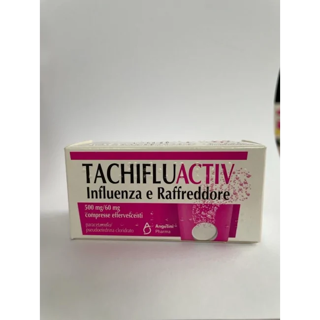 Tachifluactiv Influenza e Raffreddore 10 Compresse Effervescenti è un medicinale a base di Paracetamolo e Pseudoefedrina cloridrato utile per il trattamento di febbre, naso chiuso, raffreddore, dolori e influenza.