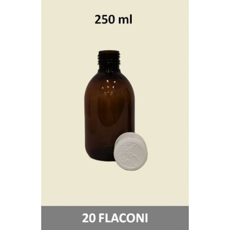 Stock 20 Flaconi in PET Scuro da 250 ml con Tappo Bianco a sigillo