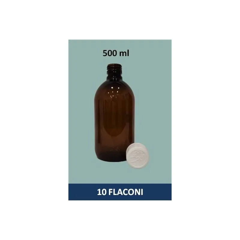 Stock 10 Flaconi in PET Scuro da 500 ml con Tappo Bianco a sigillo