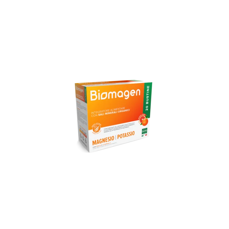 Magnesio e Potassio sono elementi essenziali per il nostro organismo, essendo coinvolti in numerosi processi fisiologici. Un insufficiente apporto con la dieta, variazioni allo stile di vita, eccessiva sudorazione o un'alterazione dell'assorbimento intestinale possono sviluppare stati carenziali di sali minerali di magnesio e potassio che si manifestano generalmente con sensazione di stanchezza mentale o fisica, indolenzimento o crampi ai muscoli e irritabilità. Biomagen può essere utile in situazioni di aumentato fabbisogno o stati di carenza di questi elementi.