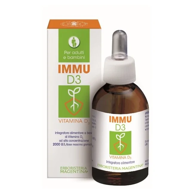 Erboristeria Magentina Immu D3 è un integratore alimentare con Vitamina D3 super concentrata utile per la normale funzione del sistema immunitario di adulti e bambini.