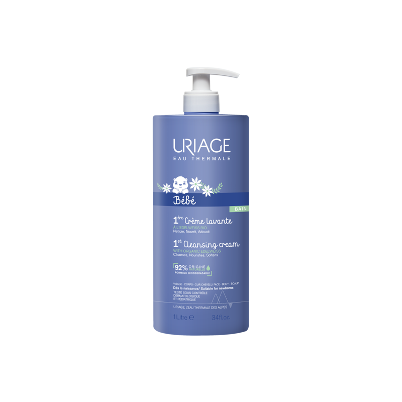 Crema detergente ricca e cremosa, deterge delicatamente e preserva il film idrolipidico. La sua formula con un complesso naturale (acqua termale di Uriage e stella alpina biologica] e burro di karité lascia la pelle idratata.