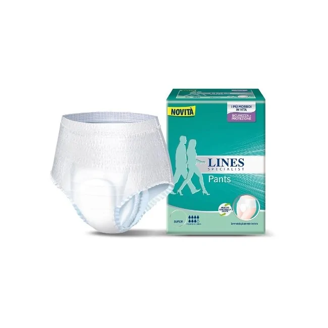I Pants LINES Specialist sono i più morbidi in vita tra i Pants con livello di assorbenza Super e Maxi della linea LINES Specialist.