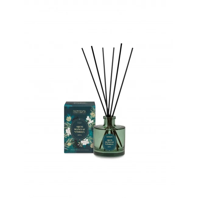 Nasoterapia Diffusore a Bastoncini Abete Bianco e Vaniglia diffonde in casa una fragranza gioiosa e rilassante che richiama l’atmosfera fiabesca dei paesaggi imbiancati dalla neve.