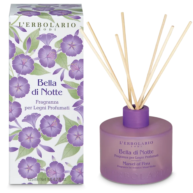 L'Erbolario Bella di Notte Fragranza per Legni Profumati è un elegante diffusore di profumo per ambienti con bastoncini in legno. Adatto per ogni ambiente della casa diffonde note fiorite e vanigliate.
